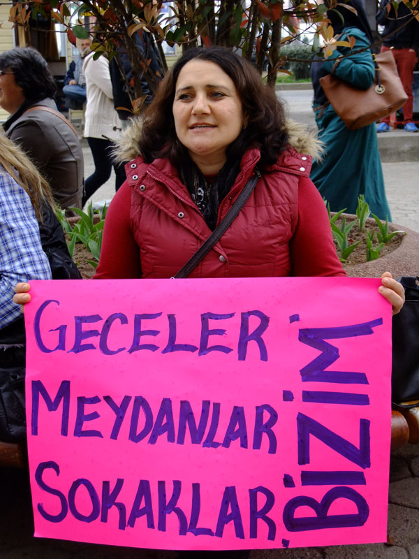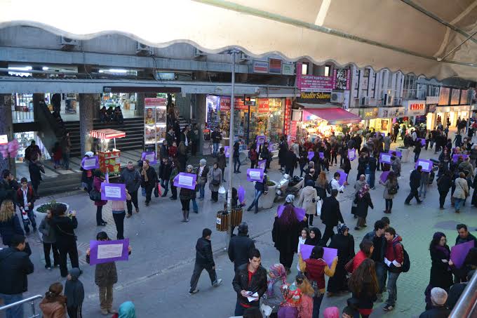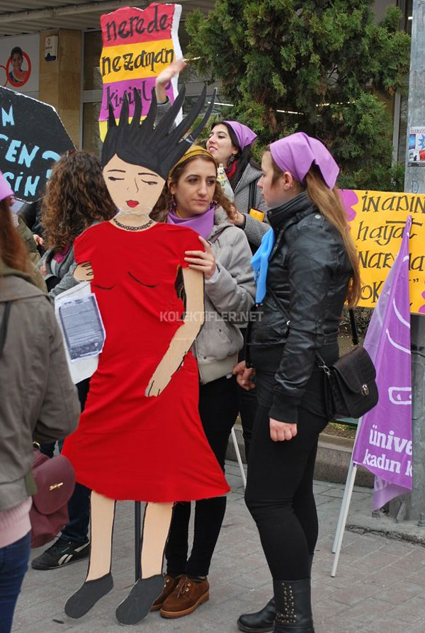 7 mart’ta “Sessiz çığlık” eylemiyle, siyah giyen kadınlar sırt sırta dizilerek bir saat boyunca yol üzerinde dövizlerle sessizce önlerinde mumlar yakarak sessizce beklediler. Kadın komisyonu adına açıklama yapan Eylem Dönertaş ;