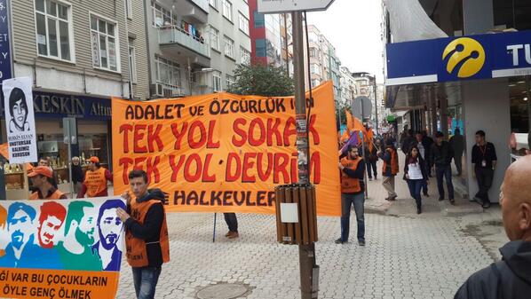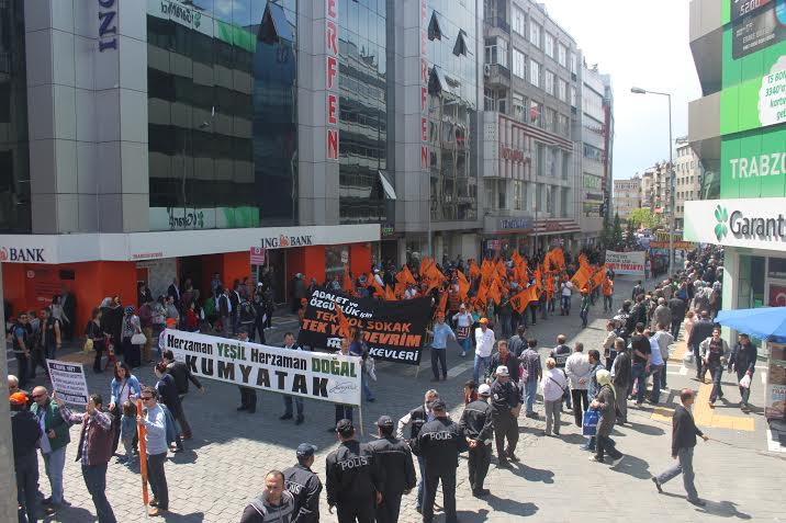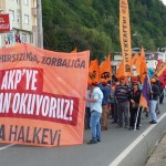 13.56 Sinop’ta miting sona ermek üzere. Sinop mitinginden bir eylemci Sendika.Org’a anlatıyor: Yürüyüş sırasında sık sık AKP’ye “Hırsız” ve “Katil” sloganları atıldı. AKP binalarının önünden geçerken “AKP halka hesap verecek” sloganı atılırken polis saldırılarının yaşandığı Ankara ve Taksim’e selam gönderildi.