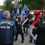 13.30 İzmir’de miting meydanına girilirken BDSP, DİP ve Mücadele Birliği ile polis arasında gerginlik çıktı. Örgütlerin üzerini aratmak istememelerinden dolayı çıkan gerginlikten sonra alana girildi.