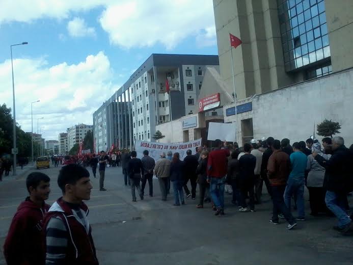 14.00 Eskişehir’de 1 Mayıs yürüyüşünde emniyetin önünde “Ali’nin katili AKP’nin polisi” sloganı atıldı.
