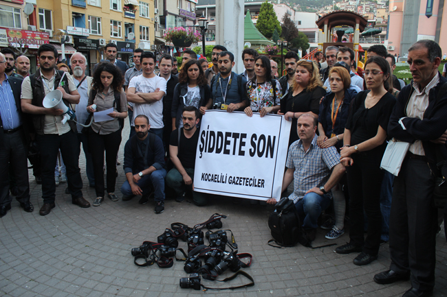 Soma’da meydana gelen maden katliamı ile ilgili Kocaeli’de yapılan eylemde polisin saldırdığı gazeteciler basın açıklaması düzenledi