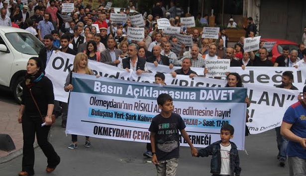 “Okmeydanı’nın Riskli Alan İlan Edilmesine Hayır” pankartıyla yapılan yürüyüş sonunda dernek yöneticileri Eraslan Alkılıç, Rüstem Karakuş ve dernek başkanı Ali Çetkin, Semt Konağı önünde birer konuşma yaptı. Yapılan konuşmalarda belediyenin seçim sonrasında bölgeyi riskli alan ilan etmesinin iyi niyetli bir girişim olmadığı, yapılan işlerde halka danışılmadığı gibi ilçe ve büyükşehir belediyelerinin emirlerine kayıtsız şartsız uyulmasının istendiği, mülkiyet sorunu çözülüp hukuki güvence oluşturulmadan alınan riskli alan kararının hak sahiplerini hak kaybına uğratacağı ifade edildi. Kurulan halk kürsüsü ile mahalleli de sözünü söyledi.