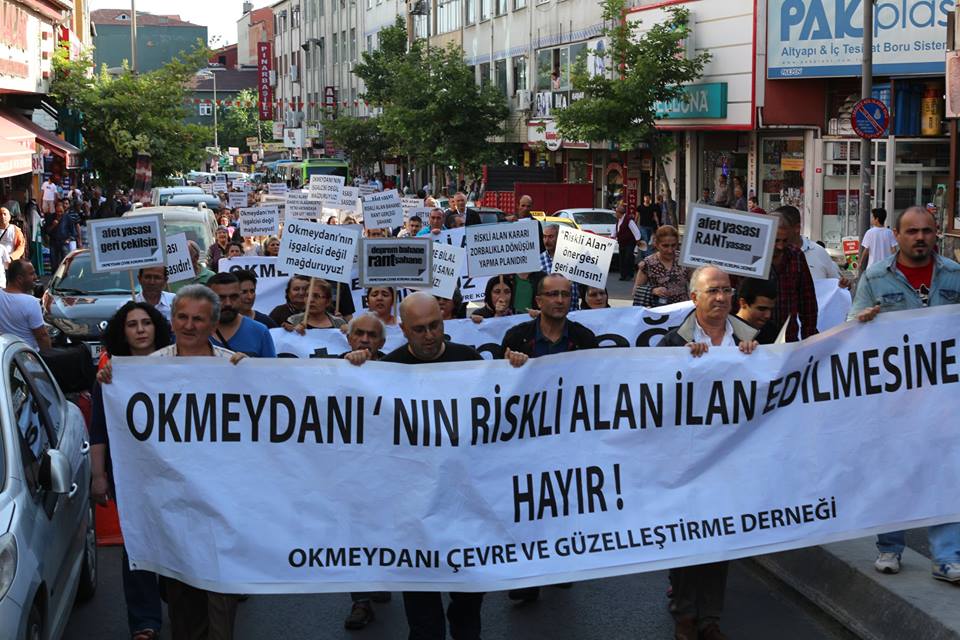 Dernek yöneticisi Rüstem Karakuş, burada yaptığı açıklamada riskli alan kararının deprem riskiyle bir ilgisi olmadığını, kararının tepeden inme, siyasi bir karar olduğunu ifade etti. Karakuş, bölgede zemin etüdü yapılarak hazırlanan raporda “Okmeydanı’nın doğal afetlere dayanıklı bir zemin olduğu” ifadelerinin yer aldığını vurguladı.