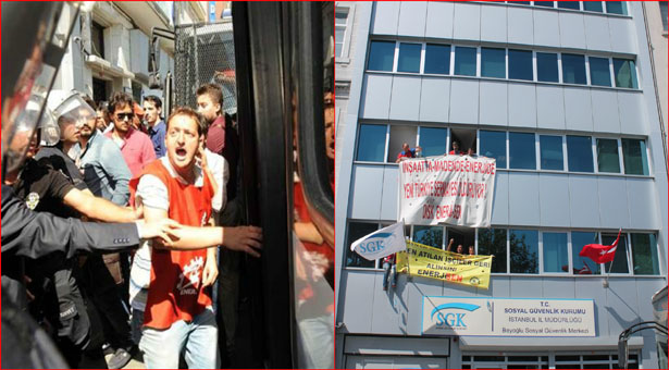 DİSK Enerji Sen üyeleri Torun İnşaat’taki iş cinayetinde yaşamını yitiren 10 işçi ve çalışırken can güvenliği istediği için işten atılan enerji işçileri için SGK Beyoğlu Sosyal Güvenlik Merkezi binasını işgal etti. 15 işçi gözaltına alındı