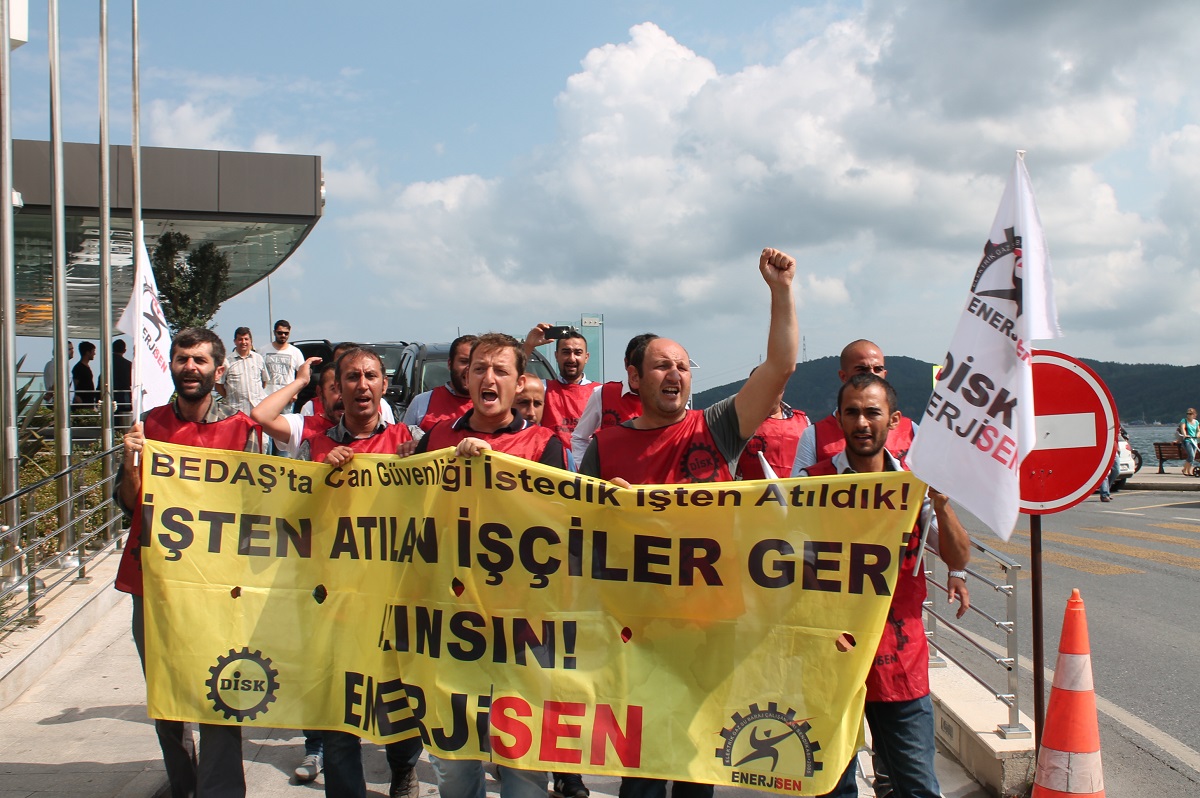 DİSK’e bağlı Enerji Sen sendikası yaklaşık dört yıldır örgütlü olduğu BEDAŞ’ta iş güvencesi ve işçi sağlığı için mücadele yürütürken, geçtiğimiz Ağustos ayında BEDAŞ Avcılar işletmesinde 26 sendika üyesi işten çıkartıldı. Cengiz-Kolin-Limak ortaklığı tarafından can güvenliği için koruyucu malzeme isteyen işçilerin taleplerine yanıt vermek yerine 26 işçiyi işten çıkararak düşmanca bir tavır sergiledi.