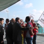Enerji Sen üyeleri görüşme taleplerinin yerine getirilmesi için otel önünde bekleyişlerini sürdürürken, Bakan Yardımcısı Hasan Murat Mercan işçilerin talebini dinlemek yerine kaçtı.