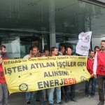 BEDAŞ’ta çalışırken keyfi gerekçelerle işten atılan Enerji-Sen üyesi 26 işçi, ”BEDAŞ’ta can güvenliği istedik işten atıldık. İşten atılan işçiler geri alınsın!” pankartıyla bugün (6 Eylül)enerji zirvesi adı altında gerçekleştirilen ”III. Uluslararası Petrol ve Doğalgaz Arenası” toplantısı öncesi seslerini duyurmak için toplantının gerçekleştirildiği İstanbul Grand Tarabya Otel’i önünde sabah eylem yaptı.