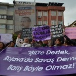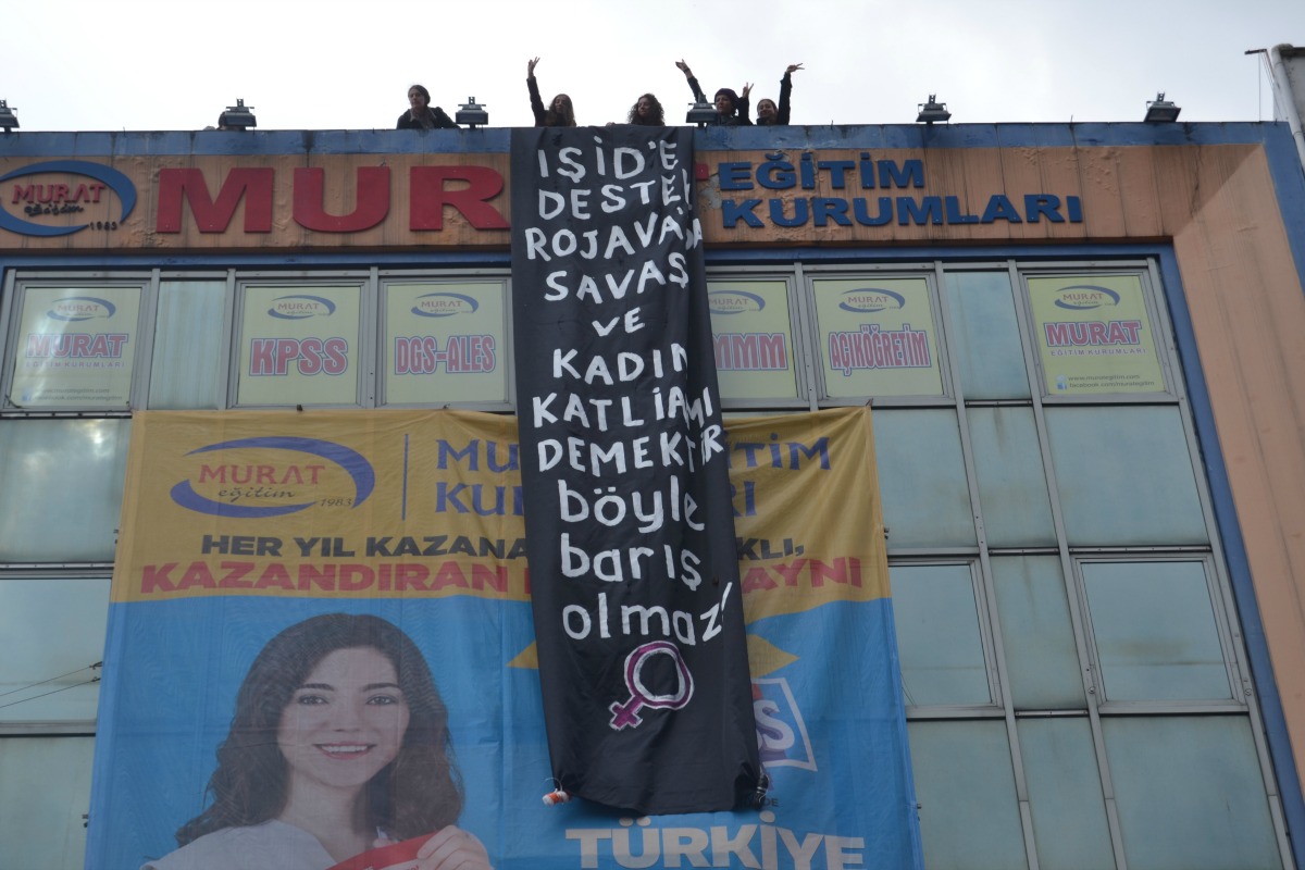 İstanbul Kadıköy’de kadınlar, “IŞİD’e destek Rojava’da savaş demektir, böyle barış olmaz” pankartıyla iskeleden AKP Kadıköy ilçe binasına yürüdü. Barış İçin Kadın Girişimi çağrısı ile bir araya gelen 36 kadın örgütü Kadıköy-Beşiktaş İskelesi’nde toplanarak AKP Kadıköy İlçe binasına yürüdü.
