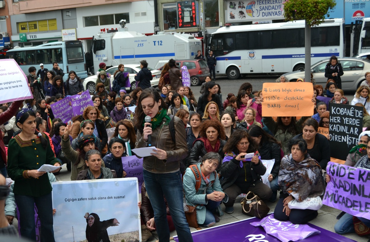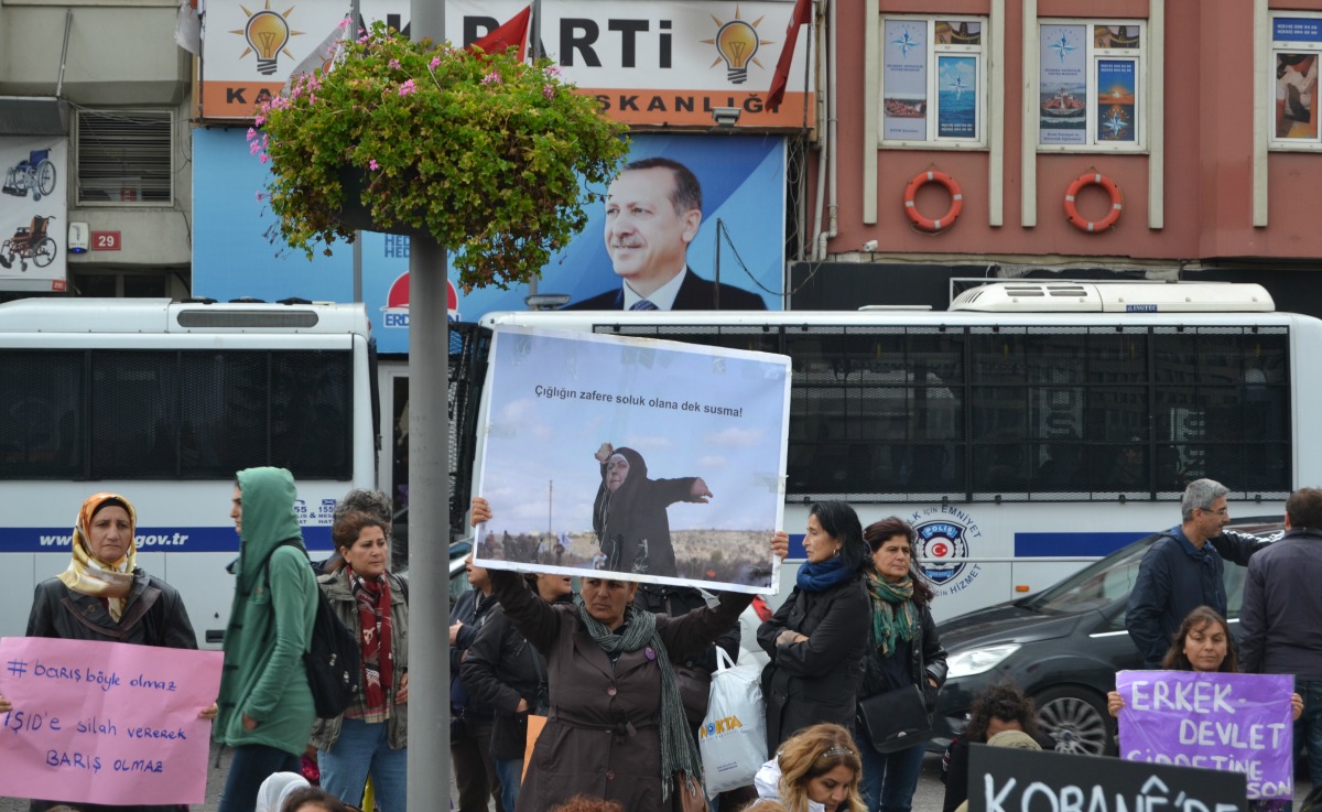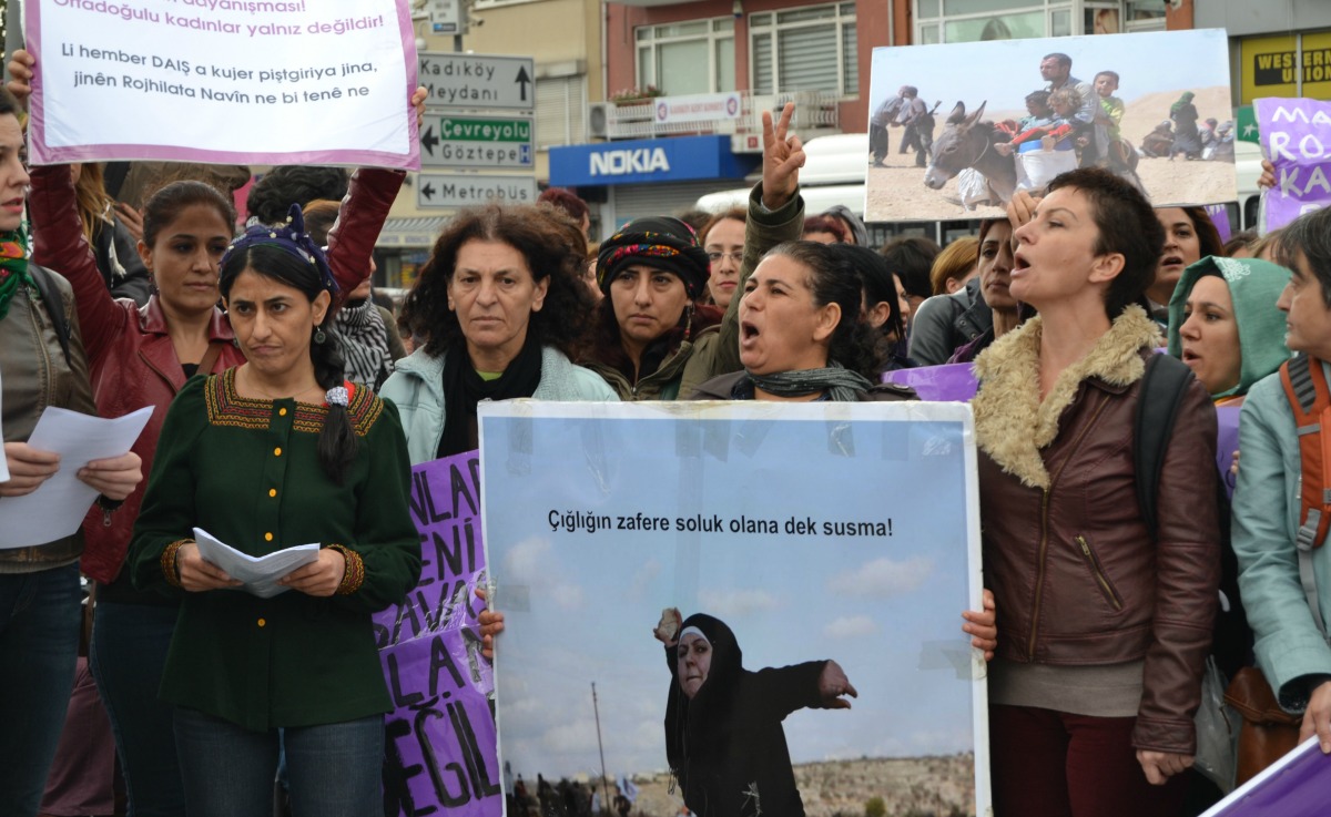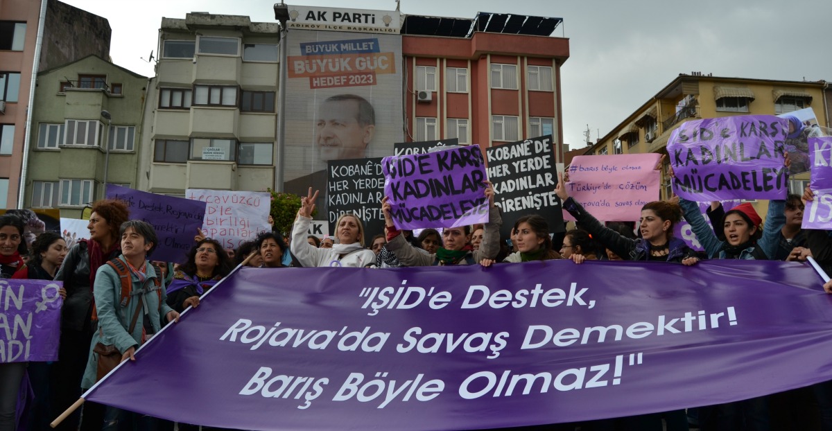 İstanbul Kadıköy’de, Barış İçin Kadın Girişimi’nin çağrısı ile bir araya gelen 36 kadın örgütü “Böyle barış olmaz” sloganıyla Kobanê’ye saldıran IŞİD’e AKP’nin destek vermesini protesto etti. Kobanê’ye yönelik IŞİD saldırısı ile kadınların özgürlüğünün ve güçlenmesinin hedef alındığını söyleyen kadınlar, savaşa ve erkek egemen zihniyete karşı kadın dayanışmasını ve mücadelesini büyüteceğiz dedi