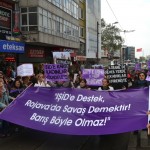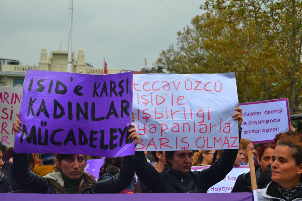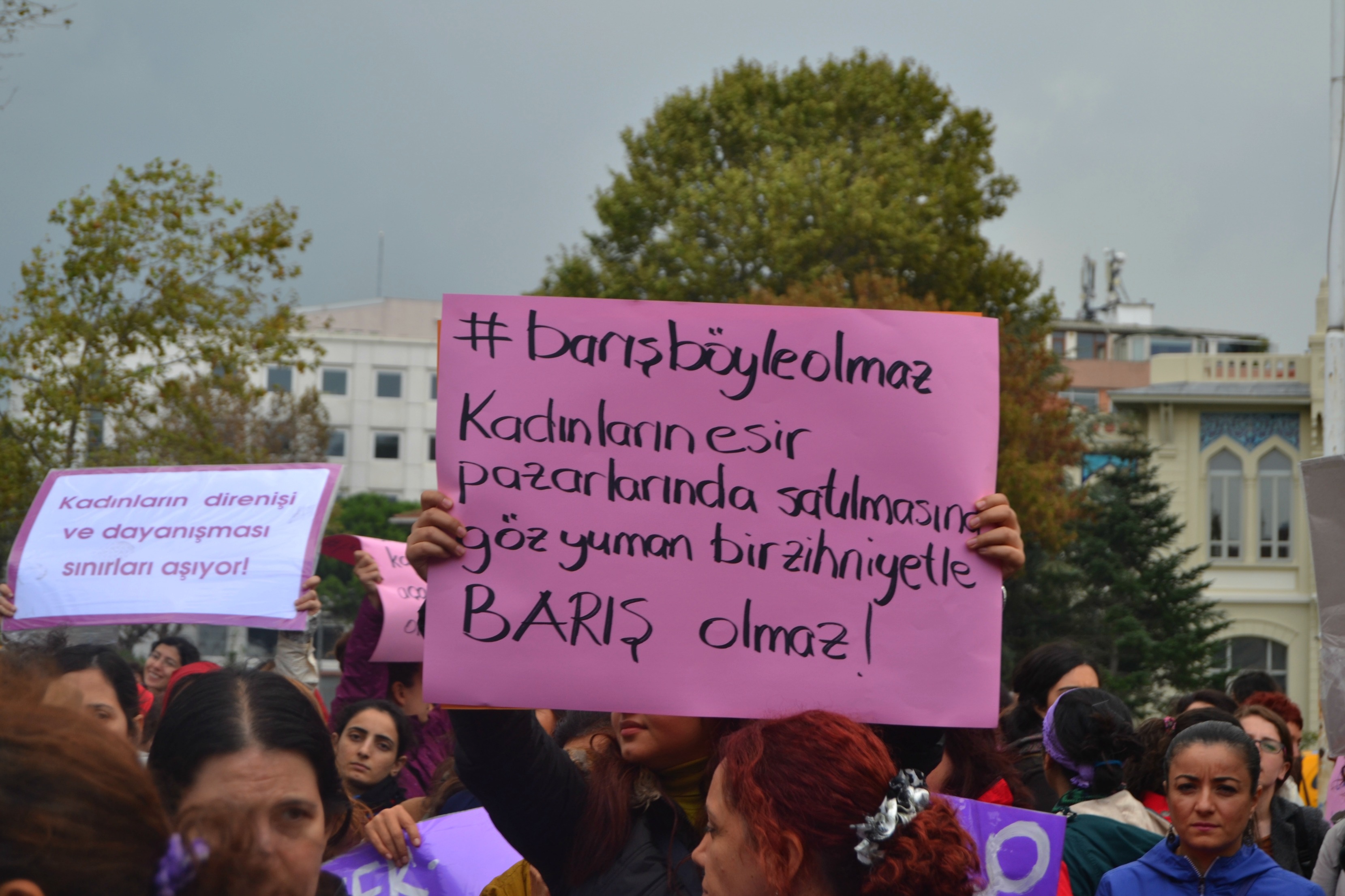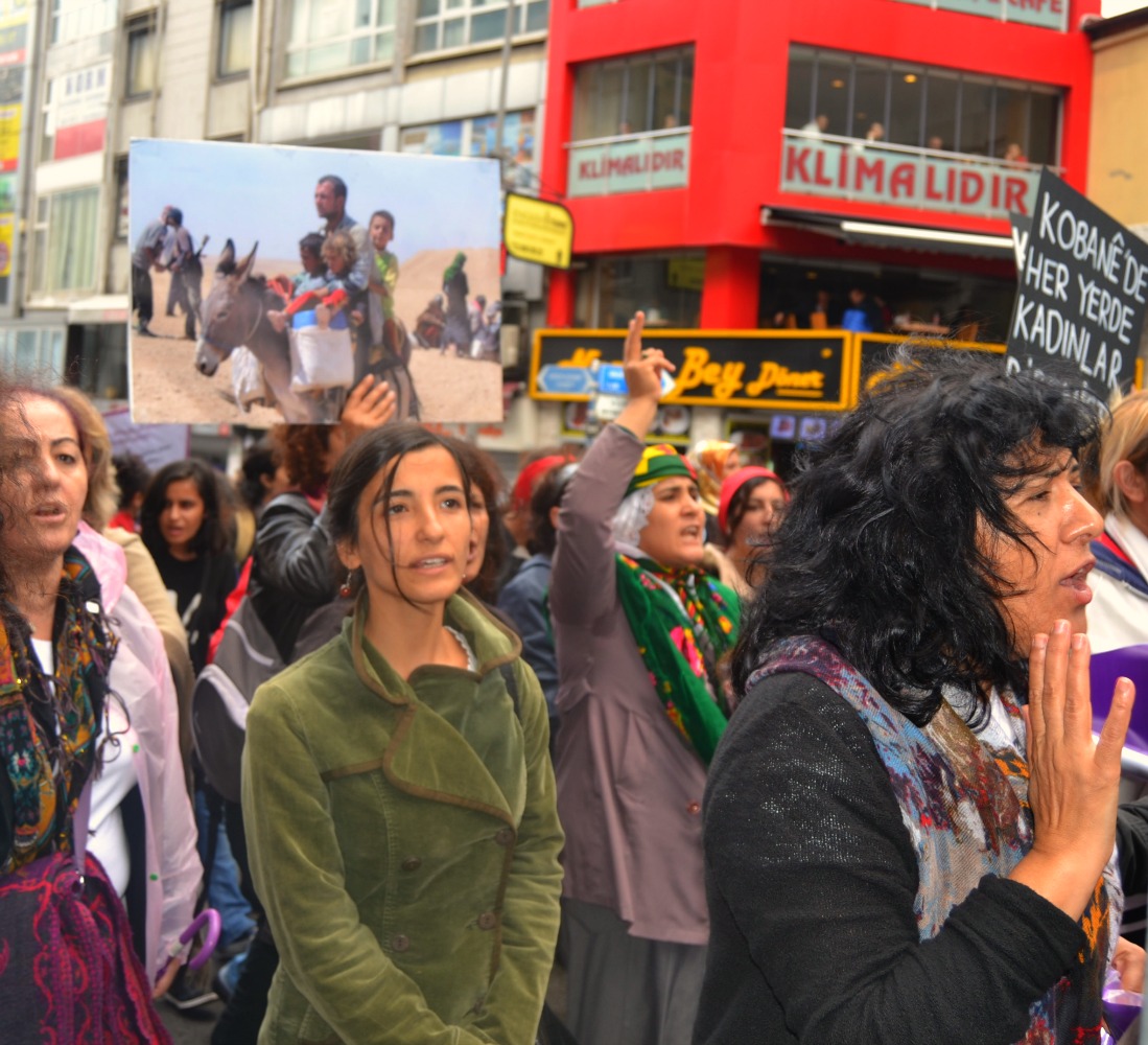 İstanbul Kadıköy’de, Barış İçin Kadın Girişimi’nin çağrısı ile bir araya gelen 36 kadın örgütü “Böyle barış olmaz” sloganıyla Kobanê’ye saldıran IŞİD’e AKP’nin destek vermesini protesto etti. Kobanê’ye yönelik IŞİD saldırısı ile kadınların özgürlüğünün ve güçlenmesinin hedef alındığını söyleyen kadınlar, savaşa ve erkek egemen zihniyete karşı kadın dayanışmasını ve mücadelesini büyüteceğiz dedi