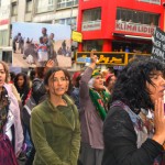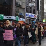 Yürüyüş sırasında sık sık “Barış için ısrar ısrar ediyoruz”, “Biji Berxwedane Kobanê”, “Deng bide, deng bide, Aşiti’ye deng bide”, “Kobanê’ye değil IŞID’de sınırları kapa”, “Kadınların bedeni savaş meydanı değildir”, “İŞID’e geçit yok, kadınlar direniyor” sloganlarını atan kadınlara çevre halkı alkış ve ıslıklarla destek verdi.