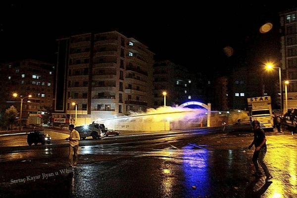 Saatlerce süren yol kapatma eylemine polisler tarafından sert müdahalede bulundu. Gençlerin taşlarla karşılık verdiği müdahalede, polis kitlenin üzerine tazyikli su ve yoğun derecede gaz bombaları attı. Gaz bulutların oluştuğu Kooperatif mahallesinde gençler ara sokaklara dağılarak polis ile çatıştı. Saatlerce süren çatışmalar sona ererken, Seyrantepe ve Şentepe mahallelerinde caddelere çıkan kitle, yaktıkları ateşler etrafında Kobanê’ye destek sloganları atup, IŞİD’in saldırılarını kınandı.