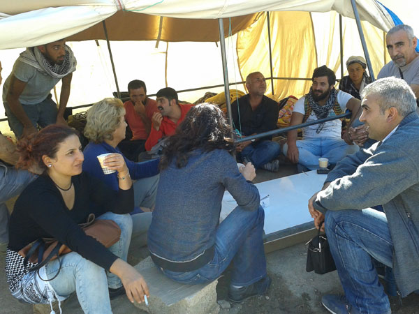 Mersin Emek ve Demokrasi Platformu bileşenleri belediye ziyaretinin ardından Suruç’un merkezinde bulunan çadırkenti gözlemledikten sonra şehirden ayrıldı.