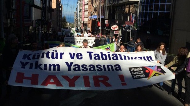 “Derelerin, ormanların, yaylaların talanına karşı yaşamı savunuyoruz” diyen binlerce kişi Trabzon’ da bir araya geldi. Derelerin Kardeşliği Platformu’nun (DEKAP) düzenlediği “Karadeniz kararmasın, geleceğimiz solmasın” mitingi bugün (9 Kasım) Trabzon’da binlerce yaşam savunucusunun katılımıyla gerçekleşti. Artvin, Rize, Trabzon, Giresun ve Ordu’nun ilçelerinden, siyanüre, HES’lere (Hidro Elektrik Santral), yeşil yol projesine, orman talanına, çöp tesislerine karşı mücadele eden direnişçi köylüler DEKAP’ın çağrısıyla yan yana geldi.