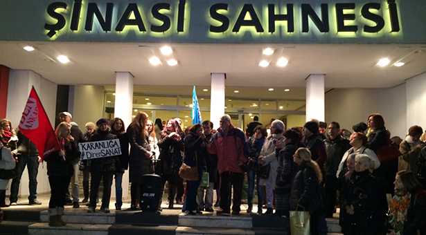 Ankaralılar, Akün ve Şinasi sahnelerinin gizlice satılmasına karşı eylemlerine devam ediyor. Başkent Dayanışması’nın çağrısıyla dün (23 Kasım) Şinasi sahnesi önünde bir araya gelen kent ve sanat savunucuları, “Ben Devlet Tiyatrosuyum”, “Sanat satılamaz”, “Perdeler kapatılamaz”, “Karanlığa inat yaşasın hayat” sloganlarıyla ve dövizleriyle sanatın yok edilmek istenmesine izin vermeyeceklerini dile getirdi.