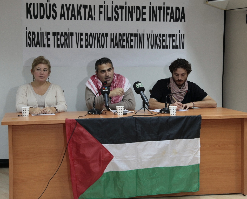 Filistin İçin İsrail’e Boykot Girişimi, FHKC Genel Sekreter Danışmanı Halid Barakad’ın da katılımıyla İsrail’in Kudüs’teki son saldırılarına ilişkin bir basın toplantısı düzenledi