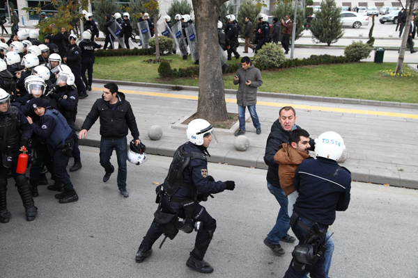 Saat 14.00’da yapılacak olan ihalenin başlama saatinden 10 dakika önce polis bir kez daha saldırıya geçti. Polisin bu defaki saldırısı daha sert oldu. Önce kalkanlarla, ardından biber gazıyla saldıran polis, 7 kişiyi darp ederek gözaltına aldı. Polisin saldırısı sırasında kalkanlar arasında ezilen ve biber gazından etkilenen çok sayıda kişi fenalık geçirdi.
