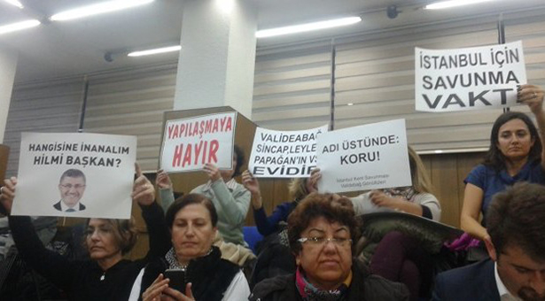 Validebağ Korusu’nun dibinde mahkeme kararına karşın yapılmak istenen cami inşaatına karşı günlerdir direnen site sakinleri, tepkilerini ve taleplerini Üsküdar Belediye Meclisi’ne taşıdı. Belediye Meclisi toplantısında protestolar üzerine konuşan Belediye Başkanı Hilmi Türkmen, camiye neden karşı olunmaması gerektiğini “Cami yapılırsa evinizin değeri artar” sözleriyle açıklama çalıştı.