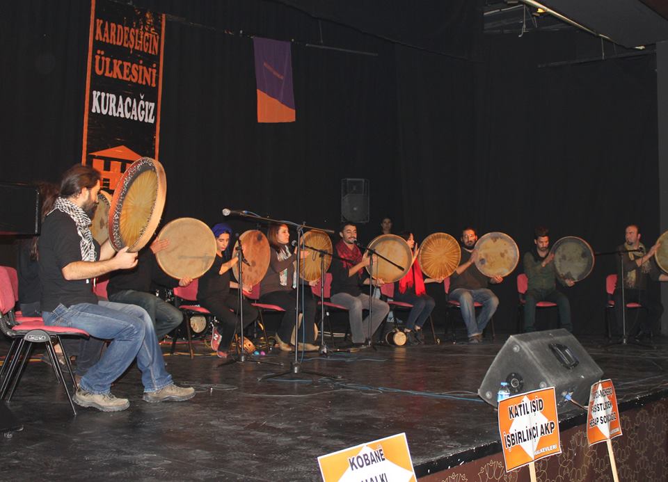 Konuşmaların sonrasında “Barışa sanat” diyerek direnenleri, şarkılarıyla, oyunlarıyla selamlayan İzmirli sanatçılar sırasıyla sahnede yerini aldı. Gönül Sazları, İlker Kılıçer, Duvara Karşı Tiyatro Topluluğu, Sokak Orkestrası, Yenikapı Tiyatrosu, Ruşen Alkar, Praksis, Murat Mengir, Peyam, Ahura Ritim Topluluğu’nun ardından etkinlik, yardım kampanyasının 9 Kasım tarihine kadar Halkevleri şubelerine ulaştırılabilineceğinin duyrulması ile sonlandırıldı.