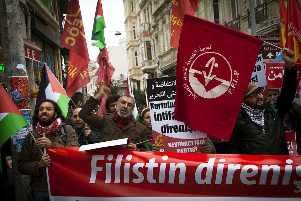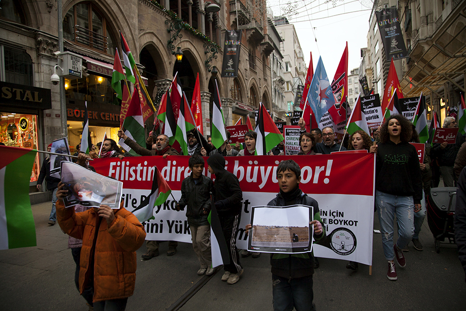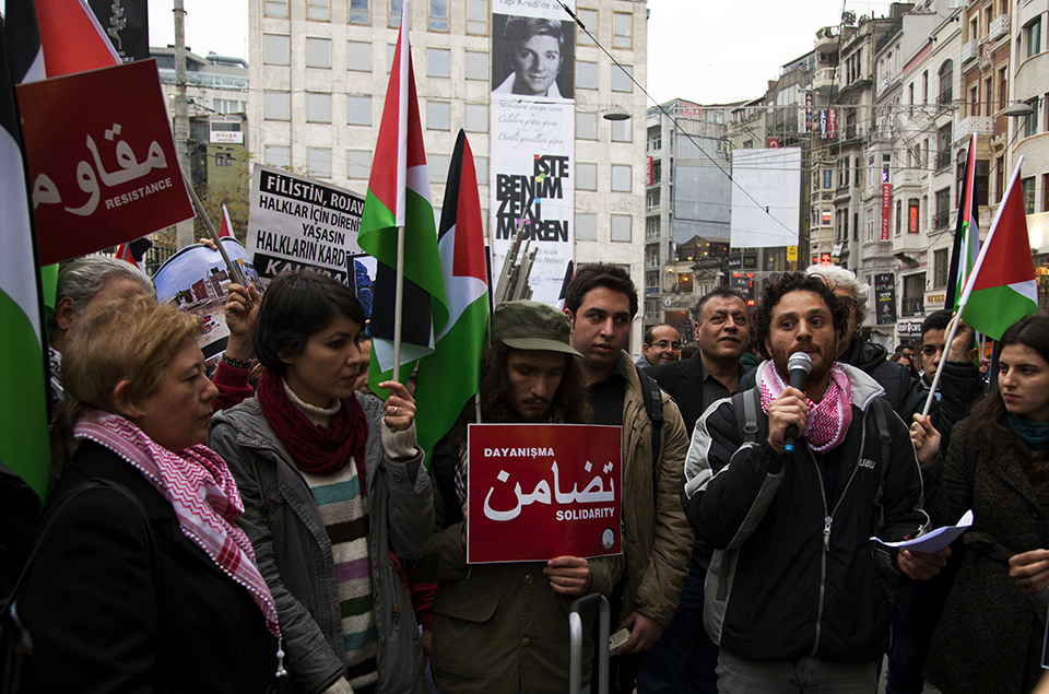 Filistin İçin İsrail’e Boykot Girişimi’nin çağrısıyla, 29 Kasım Filistin ile Uluslararası Dayanışma Günü için Tünel’den Galatasaray Meydanı’na bir yürüyüş gerçekleştirildi. Eylemde, “Filistin direnişi büyüyor! İsrail’e Boykot ve Tecrit Hareketini Yükseltelim!” yazılı pankart ve Türkçe, İngilizce ve Arapça “Direniş, Dayanışma ve İntifada” yazılı dövizler taşınırken, sloganlarla Galatasaray Meydanı’na yüründü.