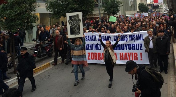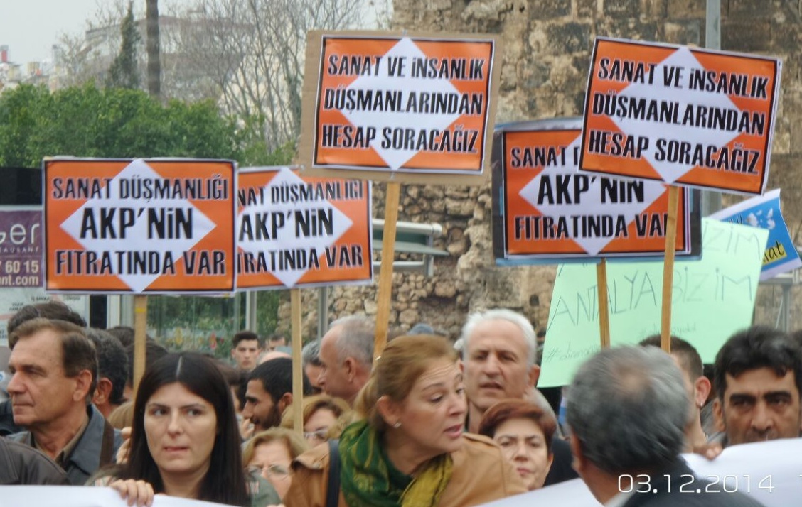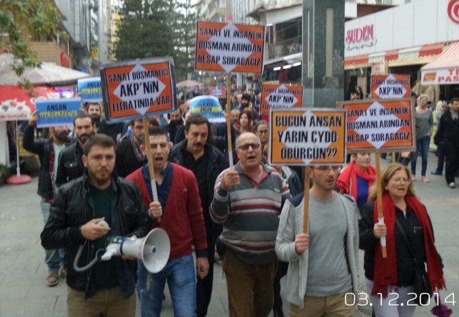 Antalya’da iki gün öne AKP’li belediyenin tahliye işlemine direnen Antalya Sanatçılar Derneği’ne yönelik polis saldırısı bugün (3 Aralık) protesto edildi