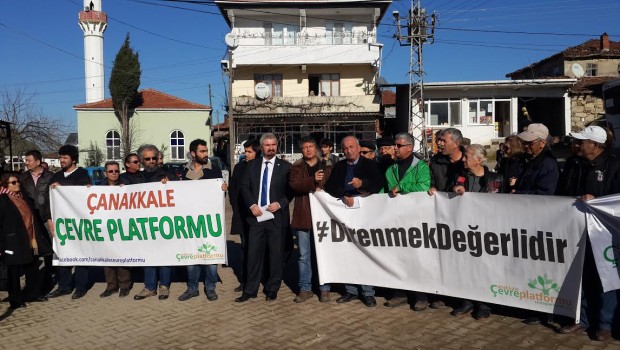 Öte yandan toplantıya alınmadıklarını, maden çalışanlarından çekindikleri, baskı altında hissettikleri için kahvehanenin önüne dahi yaklaşamadıklarını söyleyen köyün kadınları; toplantı boyunca cami avlusunda, evlerinin önünde bekledi. Herkesin katılımına açık olması gereken ÇED toplantısının bu şekilde yapılmasına karşı çıkan Çanakkale Çevre Platformu adına açıklama yapan Hicri Nalbant: “Bu sözde ÇED toplantısı yasa dışıdır, kesinlikle tanımıyoruz. ÇED’i ve işletme ruhsatını iptal ettirene kadar sürdüreceğimiz hukuk mücadelesini başlatıyoruz” dedi.