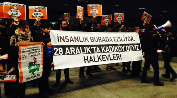 Dün (23 Aralık) akşam 19.30’da Mecidiyeköy metrobüs duraklarında buluşan Halkevciler, İstanbullular için ulaşımı adeta bir soygun ve işkenceye çeviren mevcut ulaşım politikalarını protesto etti.