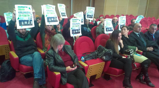 Sarıyer Belediye Meclis toplantısı öncesi hazırladıkları önergeyle CHP grubunu ziyaret eden Kent Dayanışması üyelerine, “Önergenin, ayın ilk toplantısında verilmediği gerekçesiyle gündeme alınmayacağı” yanıtı verilmişti. Bunun üzerine Sarıyer Kent Dayanışması üyeleri, bugün (5 Aralık) sabah 10.00’da başlayan Sarıyer Belediye Meclis toplantısı boyunca yanlarında getirdikleri “Zekeriyaköy’de ormanın karalanmasına izin vermeyin” yazılı dövizlerle eylem yaptı.