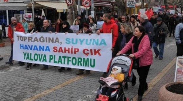 Yalova Platform’nun çağrısıyla dün GazipaşaCaddesi’nden Uğur Mumcu Kültür Merkezi’ne kadar yürüyenler “Yolumuza taş koyanlara direnişle baş koyduk”, “Yalova’da taş ocağı istemiyoruz”, “Şirketlere verecek ağacımız, suyumuz yok” sloganları attı.