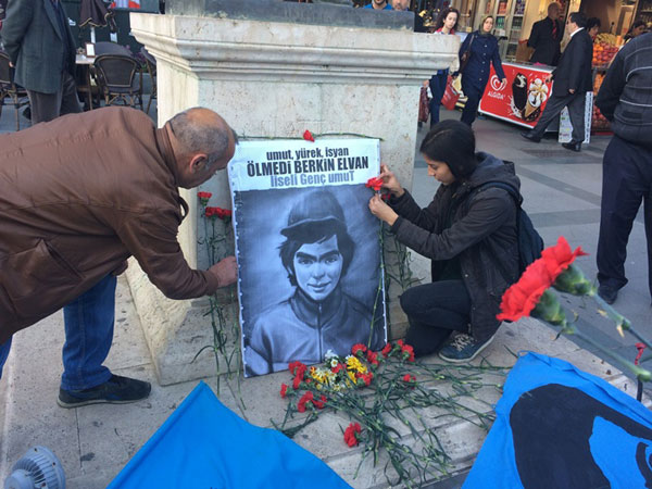 Mersin Emek ve Demokrasi Platformu’nun çağrısıyla Mersin Forum Alışveriş Merkezi Havuzbaşı önünde bir araya gelen Mersin’liler “Berkin Elvan ölümsüzdür”, “Yeni Berkin’leri, Umutları, Nihat’ları aramızdan almanıza izin vermeyeceğiz” yazılı bir pankart açtı.
