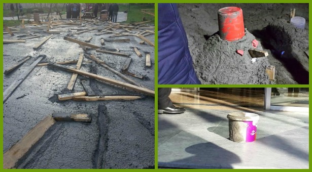 Üsküdar Belediyesi’nin Fahri Erdoğmuş Parkı’na döktüğü beton, mahalleli tarafından dağıtıldı, betonun tutması için kurulan iskelet söküldü