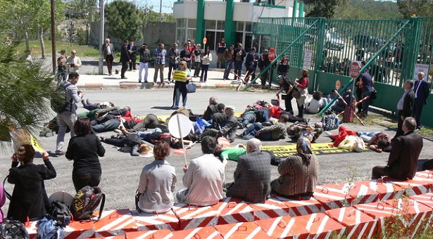 Mersin’de yapılması planlanan Akkuyu Nükleer Santrali’nin temel atma töreninde eylem vardı. İnşaat alanının kapısını tutan Mersinliler, içeride bulunanların dışarıya çıkmasına engel oldu