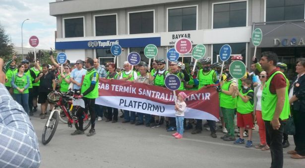 Bisikletliler adına konuşan Ercan Akbaba, “Biz çevrenin ve tabiat ananın savunucuları bisikletliler olarak burada toplandık çünkü yeşil Bursamızda DOSAB kömürlü termik santralinin kurulmasını istemiyoruz. Yeşil Bursa’nın üzerine kara bir duman tabakası çökecek ve bu her gün yoğunlaşarak devam edeceği için bitki örtüsü hızla yok olarak Kara Bursa haline gelecektir” dedi.