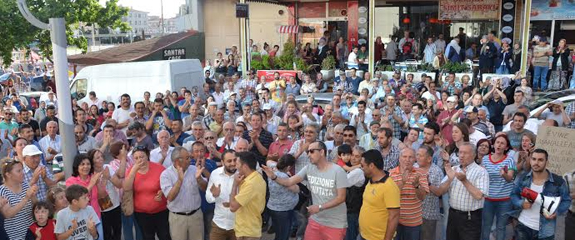 Çiğli Belediyesi önünde toplanan mahalleli, Başkan Hasan Arslan’a seslenerek “Başkan elini evimizden çek” diye alkışlarla Başkan’a çağrı yaptı. Belediye önünde toplananlar adına konuşan Osman Akkeçi, mahalle sakinleri olarak ilgililere ve özellikle Çiğli Belediye Başkanı Hasan Arslan’a seslendiklerinin altını çizerek, “Bizim taşınmazlarımızın bulunduğu üç bölgenin de imar durumlarının eski haline dönüştürülmesi hususunda ivedi olarak meclisçe karar alınarak ve bu alınan kararın İzmir Büyükşehir Meclisi’nce de tasdik ettirilerek mağduriyetimize son verilmesini hasleten sizlerden rica ediyoruz. Ataşehir Mahallesi sakinleri olarak müstakil olan yerlerin plan değişikliği ile değiştirilmesine karşıyız. Karar değişene kadar her akşam buradayız. Sonuç alana kadar buradayız. Sesimizi duyurabildiğimiz yere kadar duyuracağız” dedi.