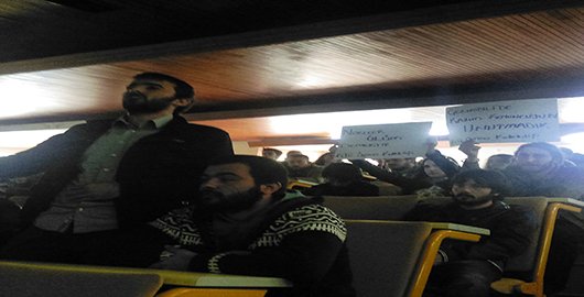 Üniversiteliler salonun boşalmasının ardından eylemini sonlandırdı.