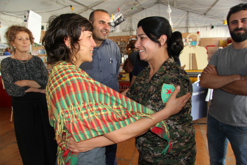 Rojava Delegation that included PYD Co-President Salih Müslim, Kobanê Canton Administration Co-President Enver Müslim and YPJ Commander Nesrin Abdullah went to Italy on 23 July in order to pay a series of official visits. The delegation held meetings in Roma, Padova ve Bologna and subsequently Salih Müslim went to Sweden while the rest of the delegation went to Sherwood Festival, held annually in Padova, this year organised with Rojava Revolution agenda. As Sendika.Org, we have talked with YPJ Commander Nesrin Abdullah on the attacks in Kobanê and women’s struggle.