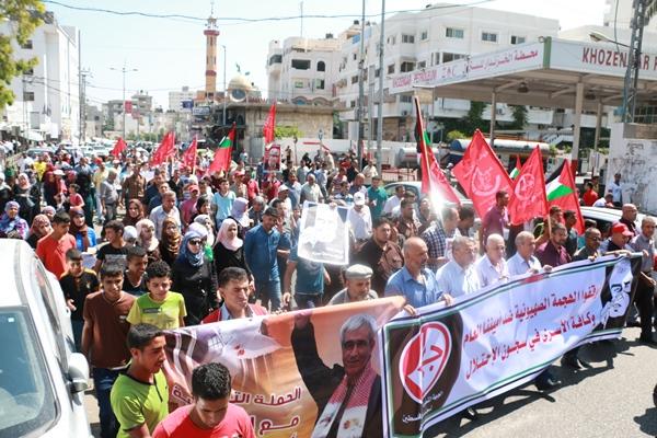 Saadat ve yoldaşlarına yönelik saldırı dün (29 Temmuz) Gazze’de ve Batı Şeria’da binlerce kişinin katılımıyla protesto edildi. Ulusal ve İslami kurumların liderlerinin de destek verdiği eylemlerde FHKC adına konuşma yapan politbüro üyesi Cemil Mizher, işgalci İsrail rejimini şu sözlerle uyardı: