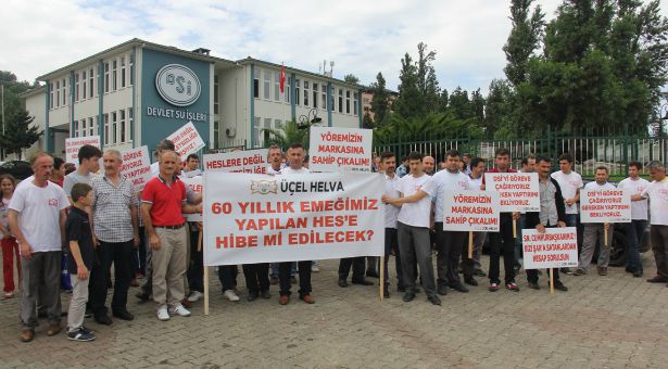Rize’nin Zincirli Köprü Köyü sınırları içerisinde, Güneysu ile Salarha Derelerinin birleştiği noktadaki dere yatağının hemen üzerinde bulunan, Üçel Helva Fabrikası çalışanları, DSİ Rize Şube Şefliği önünde HES eylemi yaptı