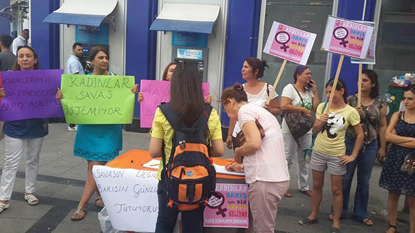 “As women, we know very well that today the war will only bring more deaths, more misery, more tears. We will continue supporting the peace on the side of the people against the governing AKP and its gangs who have built their reign on war and on aggression against women.