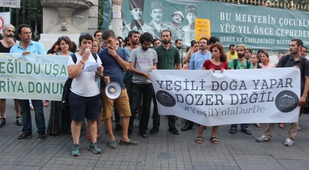 Yeşil Yol projesi kapsamında Samistal’da jandarma eşliğinde tekrar başlanan yol yapımına karşı bu akşam (20 Ağustos) Fırtına İnisiyatifi’nin çağrısıyla İstanbul’da bir basın açıklaması yapıldı. Ülkenin en büyük doğal SİT alanı, en önemli milli park alanı olan bölgeyi yok edecek, yeni maden yatakları açacak projeye karşı ortak mücadele çağrısı yapıldı