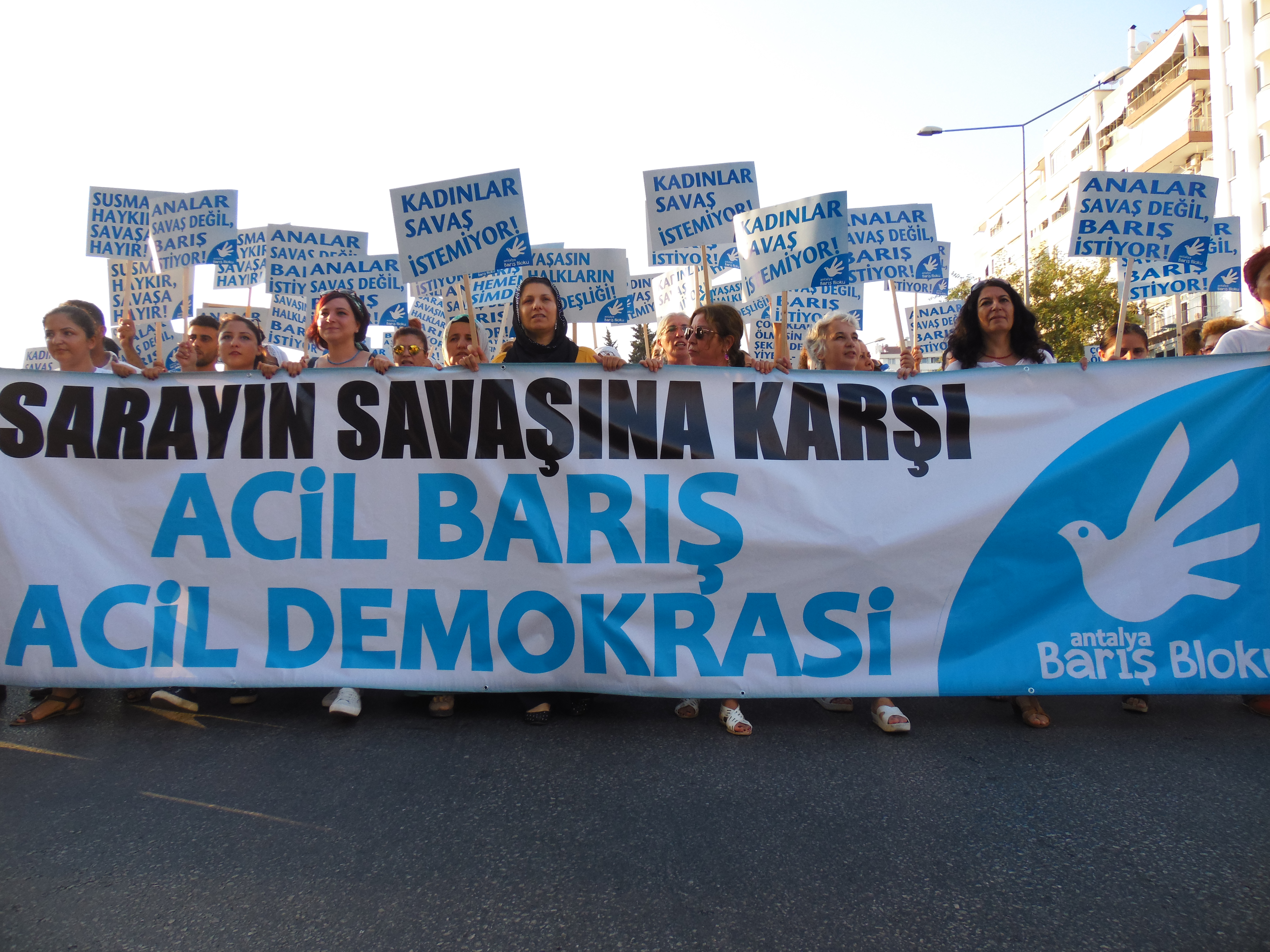 In Antalya, the Peace Block organizers met at the Teacher’s Union hall and gave a press release in which the racist attacks were condemned. “The racist attacks that actually originated prior to the June 7 elections and organized by the government is escalating by the day. Tens of people were targeted for lynching for the sole reason of being a Kurd. The daily Hurriyet newspaper also was attacked twice in 48 hours by these puppet fascist militias. All progressive and left parties, including the pro-Kurdish and progressive HDP have been attacked with 128 offices of the HDP looted and destroyed. In Many places the progressive association “Peoples’ Houses” were attacked by the fascist mob under the protection of the police, as well as the leading opposition social democratic party Peoples’ Republican Party (PRP – CHP) offices. The so-called law enforcement offices have just sat watching silently as if to protect the mob.”