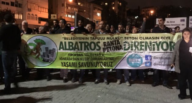 İstanbul Büyükçekmece’de CHP’li belediye tarafından otel yapılmak için yıkılmak istenen Albatros Parkı’nda direnenler 1 Ekim sabahı 6.30’ta şafak baskınıyla gözaltına alınmıştı. 15 kişinin gözaltına alınmasının ardından akşam saatlerinde parkta Albatros Dayanışması tarafından basın açıklaması yapıldı.