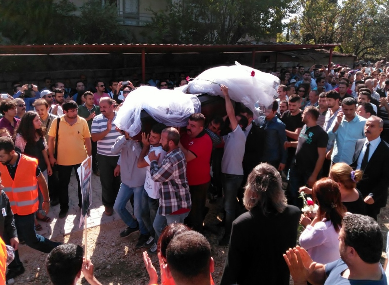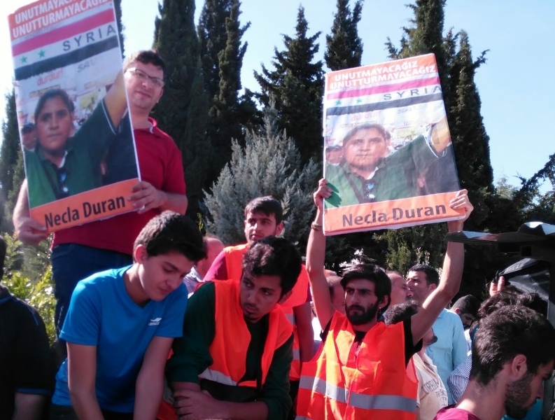 Savaşa karşı yaşam hakkını savunmak için Ankara’da düzenlenecek olan emek, demokrasi ve barış mitingine Hatay’dan katılan ve bombalı saldırı sonucu katledilen Yaşam Hakkı Meclisleri üyesi Necla Duran, memleketi Antakya’da on binler tarafından uğurlandı.