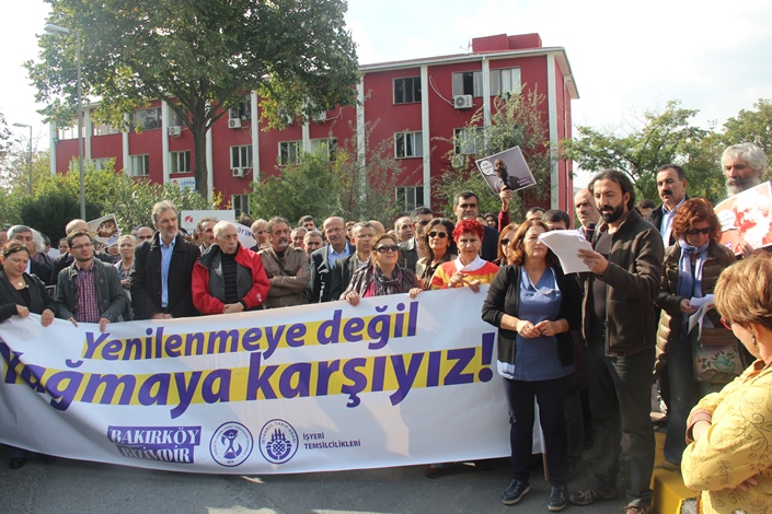 Bakırköy Sadi Konuk Eğitim ve Araştırma Hastanesi ve Bakırköy Ruh ve Sinir Hastalıkları Hastanesi çalışanları, Bakırköy halkı hastane arazisinin kamu özel ortaklığı kılıfı altında sermayeye peşkeş çekilmesine karşı 27 Ekim’de yeniden bir araya geldi. Başhekimlik önünde bir araya gelen hastane çalışanları ve Bakırköy halkı “Bakırköy’ün ruhu dokunanı çarpar” dedi. Başhekimlik binası önünden Lerpa Deri ve Zührevi Hastalıkları Hastanesi önüne kadar sloganlarla ve alkışlarla yürüyenler burada hastanemize sahip çıkacağız diyerek yaşanan rantı anlattı.
