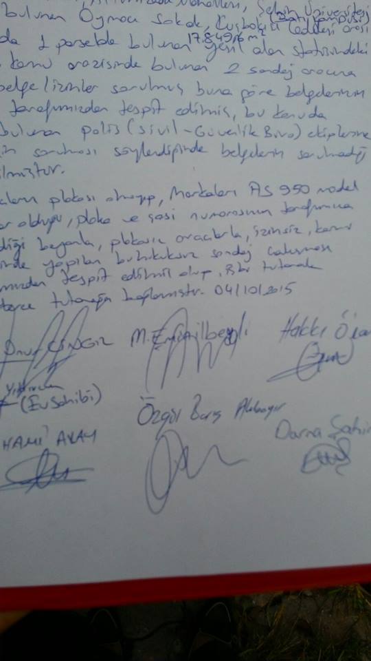 Alanda hukuksuz biçimde yapılan sondaj çalışması da mahalleliler tarafından tespit edilerek tutanak tutuldu.