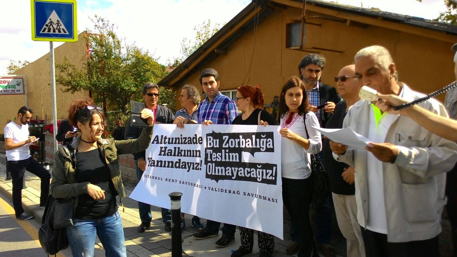 İstanbul Altunizade’de bulunan ve Abdullah Ağa Vakfı arazisiyle birlikte bir otel grubuna verilmeye çalışılan arazi ile ilgili 17 mülkün sahipleri, Validebağ Savunması ve İstanbul Kent Savunması birlikte 4 Ekim’de ortak bir basın açıklaması yaptı. Basın açıklamasında: “Ülkenin bütününü yağmaya ve talana açan sermaye ve mevcut siyasi iktidar, kentlerin en ufak yeşil alanına, dikili bir ağacına tahammül edemez hale gelmiş durumda. Hiçbir evin, mahallenin, sokağın, kamusal alanın güvencesi kalmamış durumda. Her an tepemize bir dozer kepçesinin inmesi olasılığı ve korkusuyla adeta bir inşaat terörü altında yaşıyoruz” diyen mahalle sakinleri Oymacı Sokak’ta ikamet eden insanlar olarak, 2010 yılından bu yana inşaat ve yıkım tehdidi altında yaşadıklarını vurguladılar. 40 yıldır yaşadıkları mahallenin, 2010 yılında yapılan bir değişiklikle yüzde 40 otel ve turizm ve yüzde 60 yeşil alan olarak düzenlenmesi üzerine evlerinin parça parça yıkılmaya başlandığını söyleyen mahalleliler, elektriklerinin ve sularının kesildiğini ve 5 yıldır elektriksiz, susuz yaşadıklarını belirttiler.