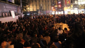 Kadınlar, Ankara Katliamı’nda yaşamını yitirenleri anmak, onların ‘barış’ öykülerini anlatmak için Galatasaray Meydanı’nda oturma eylemindeydi