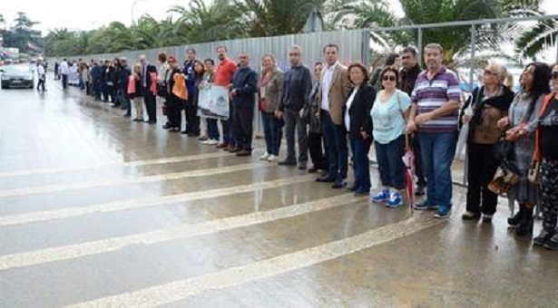 Tuzla’da denizin doldurulması projesinin iptal edilmesini isteyen Tuzla halkı bugün insan zinciri oluşturarak kazı çalışmalarının yapıldığı alanda basın açıklaması yaptı