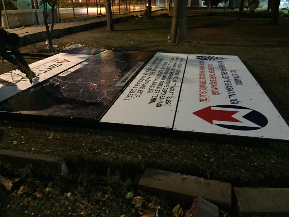 İstanbul’da bulunan Fındıklı Parkı’nın metro inşaatı nedeniyle etrafının çevrilmesi, oyun aletlerinin kaldırılması üzerine harekete geçen yaşam savunucuları 5 Ekim gecesi parka şantiye tabelası asmaya çalışan yüklenici firma Alsim-Alarko’nun taşeron firması Emay Mühendislik’i engelledi. Gece 02.00 sularında “yasal yetkileri” dahilinde tabela asmaya çalışan Emay Mühendislik işçilerini engelleyen yaşam savunucuları sabah da parkın önünde bulunan durağın kaldırılmasına izin vermeyerek sökülen parke taşlarını tekrar dizdirdi.