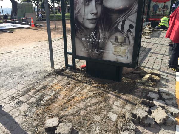 Yaşam savunucuları Fındıklı Parkı’nın şantiyeye çevrilmesine karşı tetikte. Gece yarısı parka şantiye tabelası asmaya çalışan şirketi engellerken sabah da parkın önündeki otobüs durağının kaldırılmasına izin vermedi